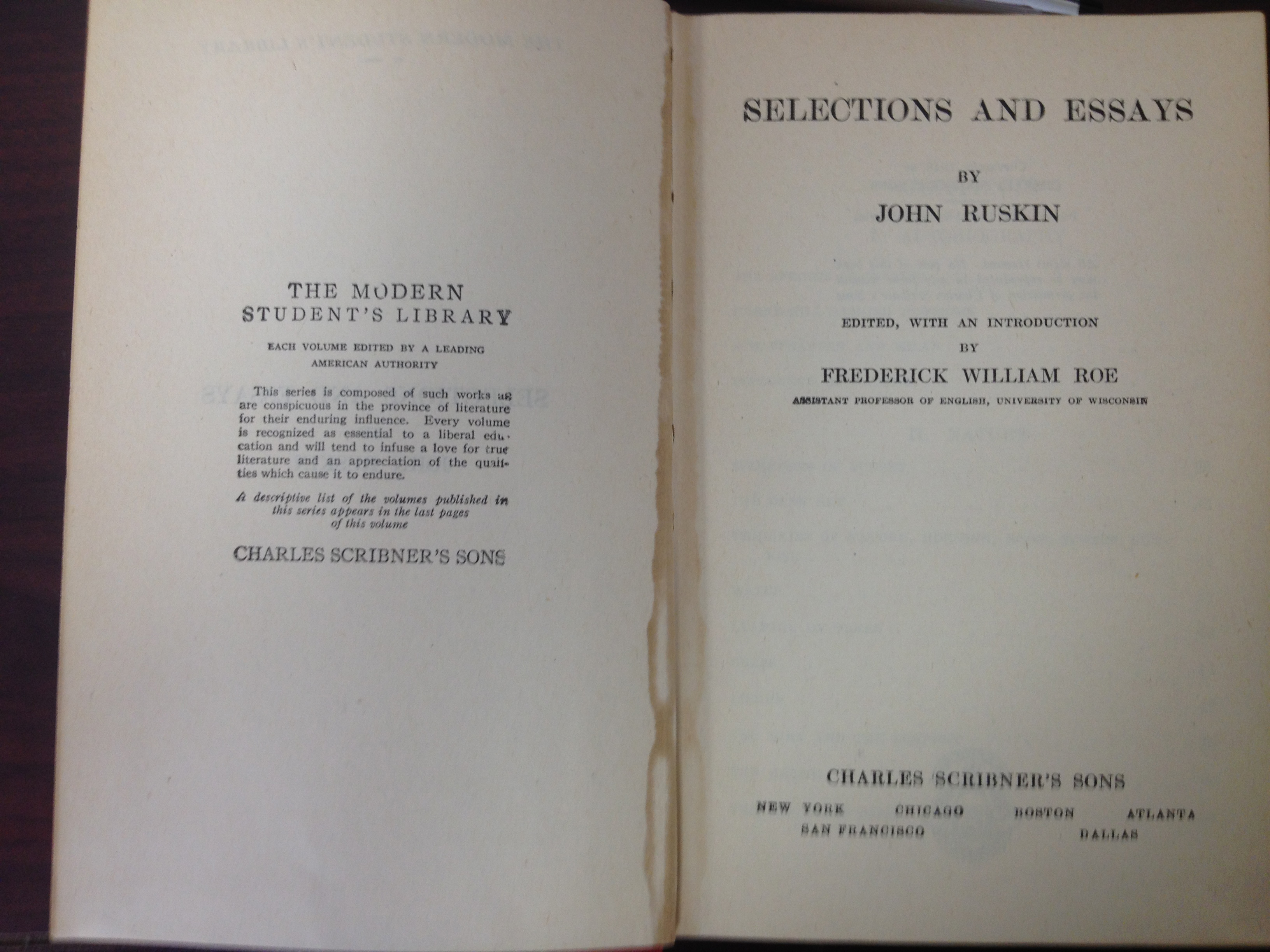 At the Lantern, in Georgetown, a fantastic (and cheap!) used bookstore filled with high quality, interesting books, I gathered up a whole mess o’ reading, including this collection by the nineteenth century art critic, John Ruskin.