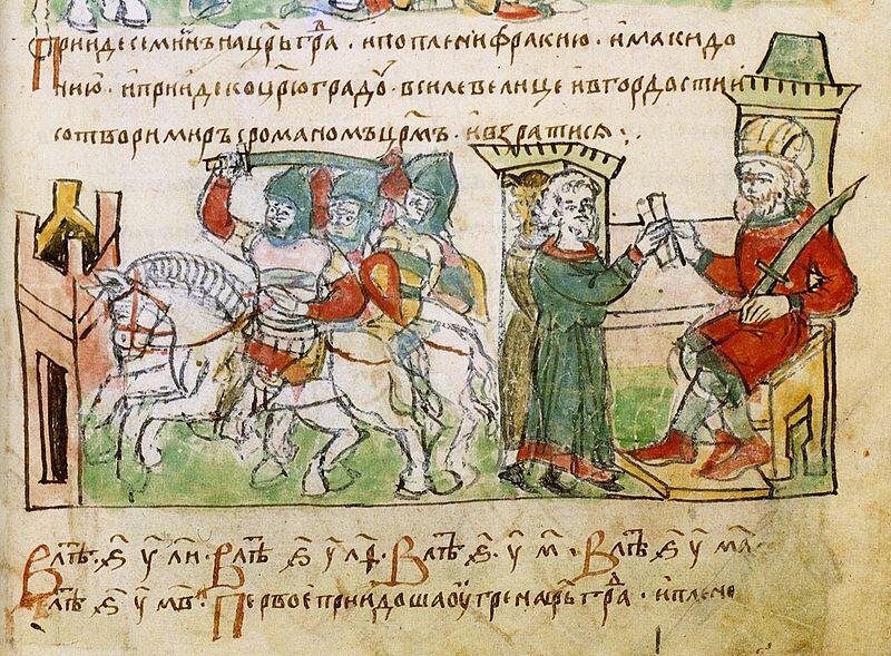Byzantine Emperor Romanos I Lekapenos negotiating terms with Simeon I of Bulgaria. Radziwill Chronicle (C.15th) Rate this:Share this: Share on Facebook (Opens in new window) Facebook Share on X (Opens in new window) X Share on Pinterest (Opens in new window) Pinterest Share on WhatsApp (Opens in new window) WhatsApp Share on Tumblr (Opens in new window) Tumblr Share on LinkedIn (Opens in new window) LinkedIn Email a link to a friend (Opens in new window) Email Share on Reddit (Opens in new window) Reddit Print (Opens in new window) Print Like Loading...