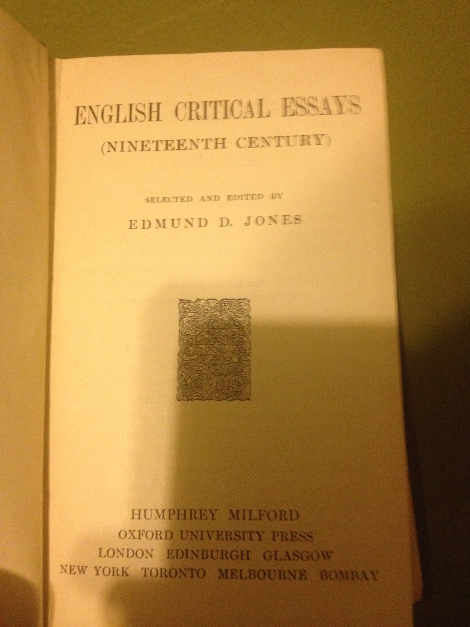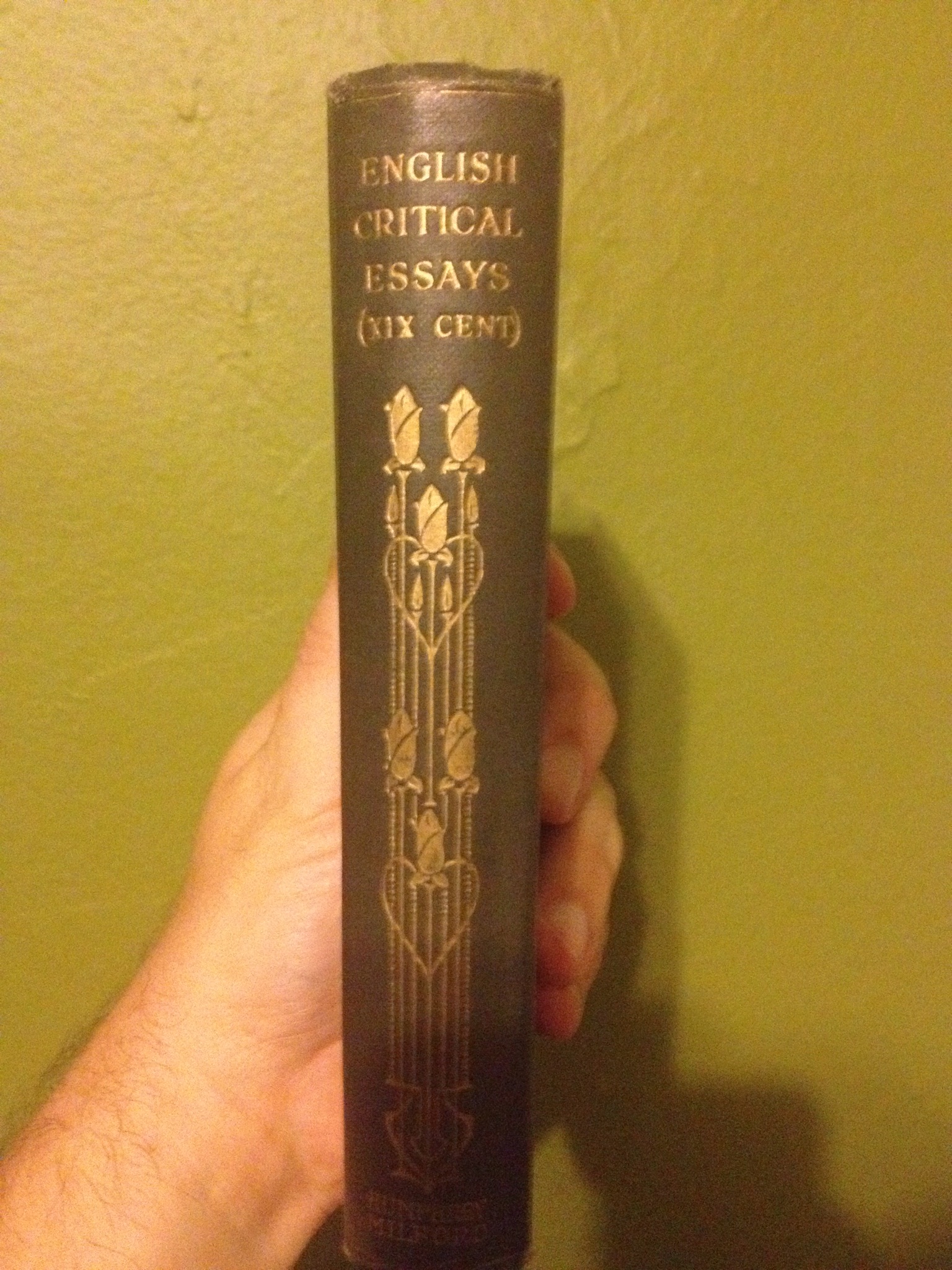 This lovely book (it’s amazing to the touch; one of those books that feels preternaturally cool and comforting to the skin), despite it’s broad sounding title, is focused heavily, indeed, almost exclusively, on essays about poetry from the first two thirds of the nineteenth century.