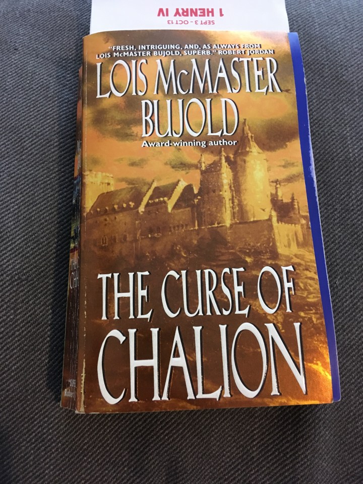 I can’t remember where this was recommended to me as an excellent fantasy novel by a female writer whose work is in danger of being overlooked these days, but it made enough of an impression that I bought this when I saw it at library book sale near my house. Unfortunately, Ms. Bujold will boy get royalties on the dollar I gave the Southeast library. Fortunately, I did get a good book. I devoured it as quickly as I could over the first few days that I had it.