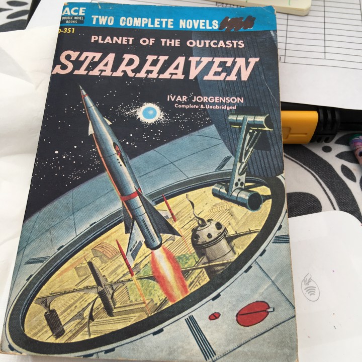 Ivar Jorgensen’s Starhaven isn’t as good and is also something like 25% longer. Some interesting ideas (also involving, like its companion volume, brain wipes and implanted false memories), but a little disappointing after the more traditionally exciting Sun Smasher. Somehow, he made a rogue planet of criminals living in a social Darwinist paradise kind of meh.