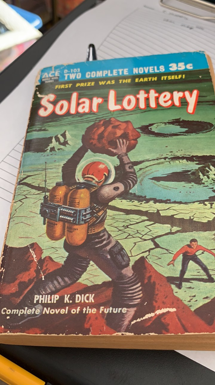 Philip K. Dick is deeply weird, but the Ace Double packaging (the other side is Leigh Brackett’s The Big Jump) lulled me into expecting something more like traditional fifties-sixties-seventies genre writing: weird, but not super duper wacky, Philip K. Dick weird.