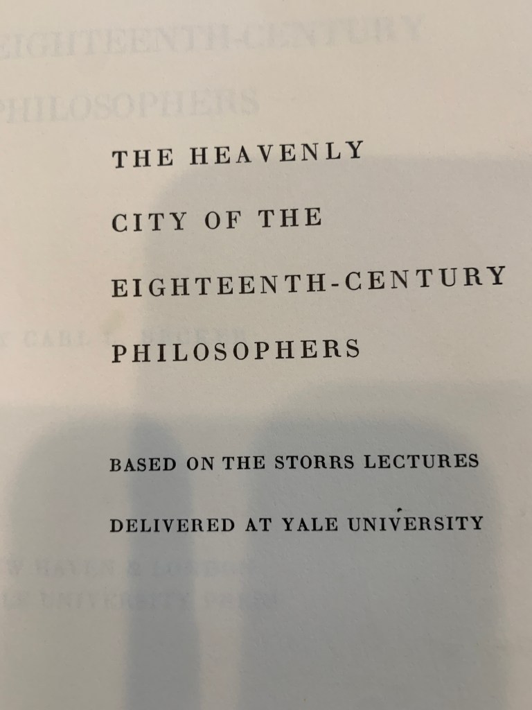 How did have I not read Becker before? He has the classic style of the great, witty, learned, essayists of the nineteenth century. This book reads like a sequence of connected essays, which, effectively, they are, being based on a series of lectures he gave. Becker’s name appeared before me while reading Garry Wills’ Inventing America; while arguing against Locke’s influence and for that of the figures of the Scottish Enlightenment, mainly Reid and Hutcheson (I hadn’t realized this was controversial).
