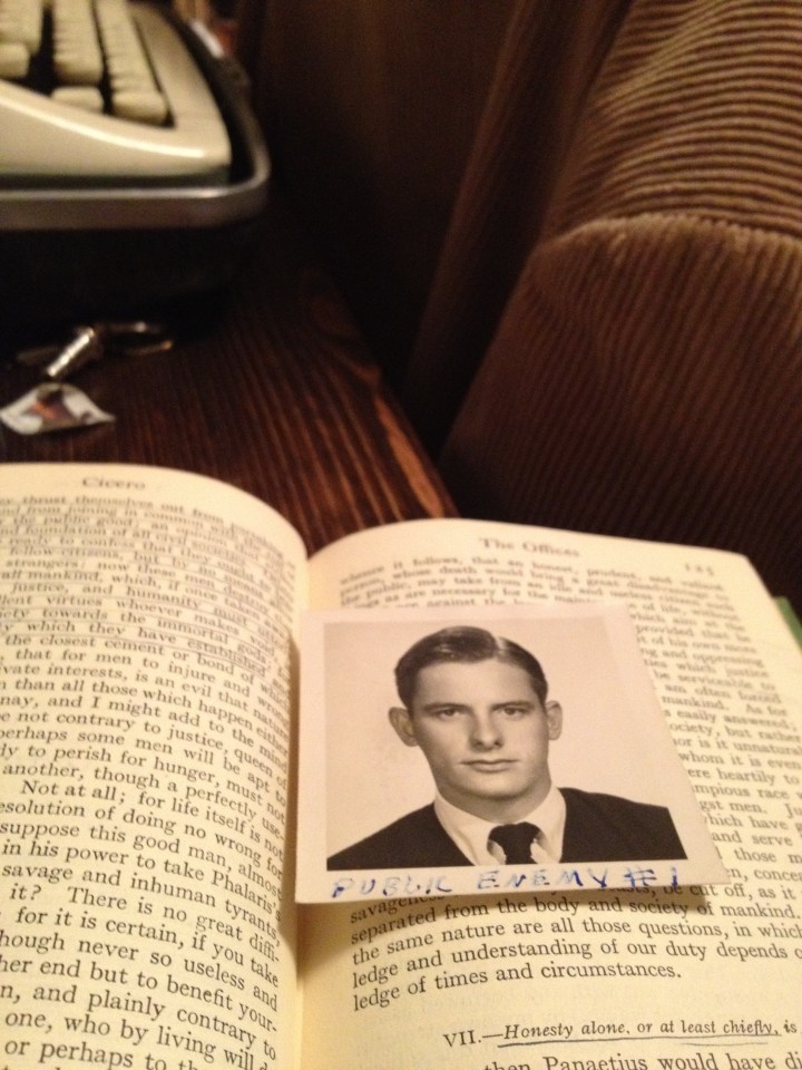 Secondly, within it was a small picture, like a school picture, on page 125. The young man, comicly identified as ‘PUBLIC ENEMY #1’ looks like an ordinary, handsome young man from the fifties (this edition was printed in 1949). The book is inscribed with the name ‘Katherine Laule’ (in truth, I am unsure about the last name). Was this young man her boyfriend? Her brother?