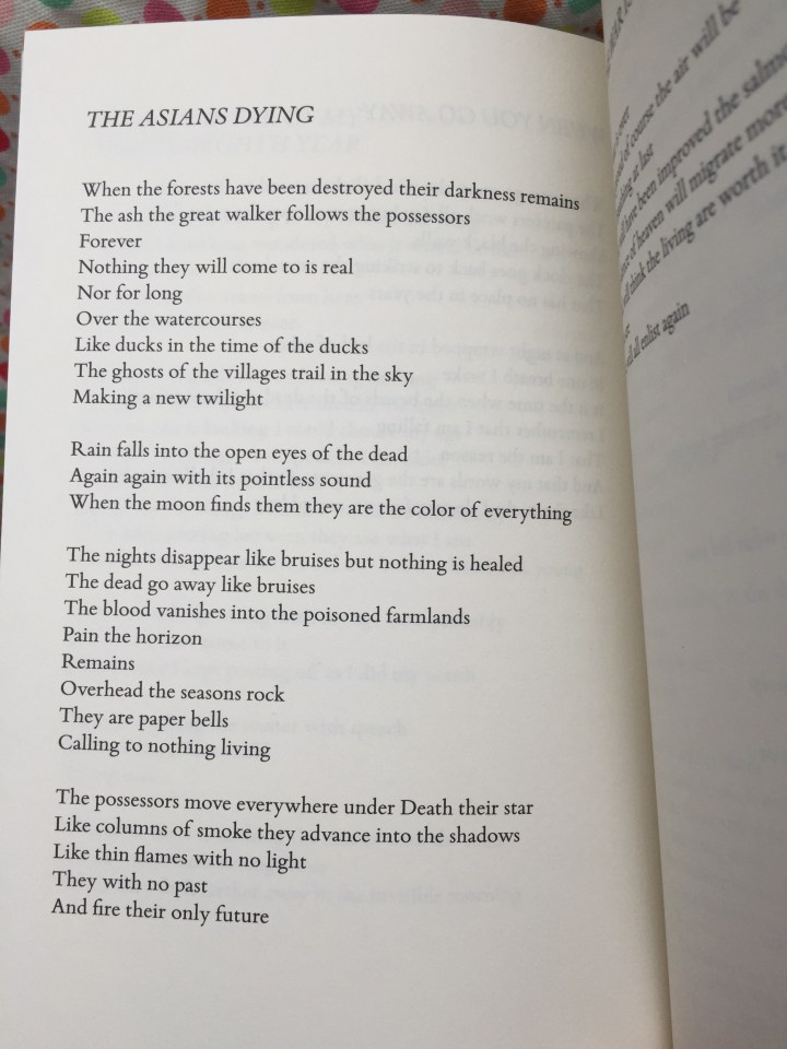 And don’t let me put you off the rest of his poetic career. He’s never done anything bad. I just don’t feel he’s done anything new since The Lice and Carrier of Ladders.